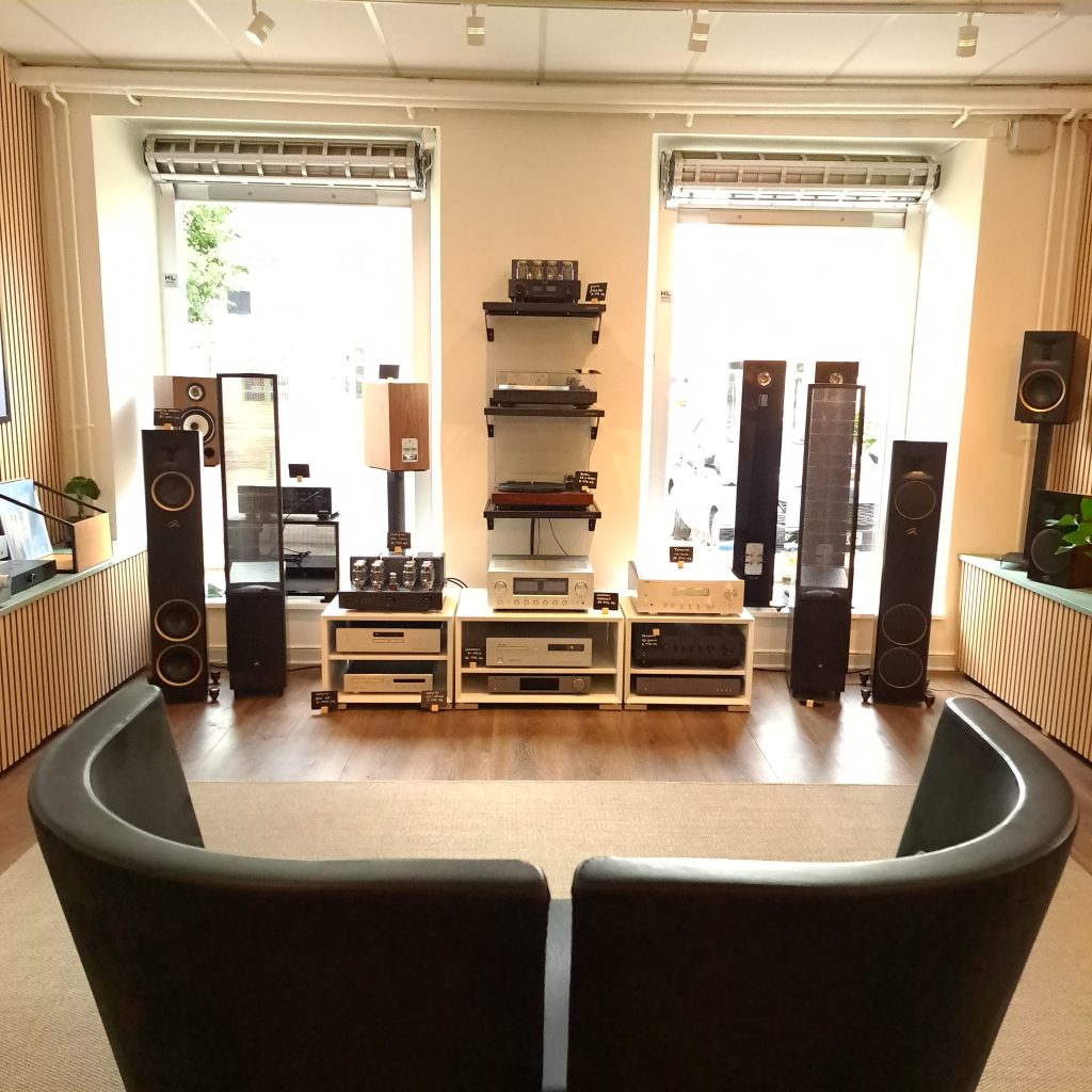 Vores showroom er bygget op med forskellige temaer inde for lyd, genre og smag i forskellige hjemlige settings, så du kan opleve musikken som derhjemme.