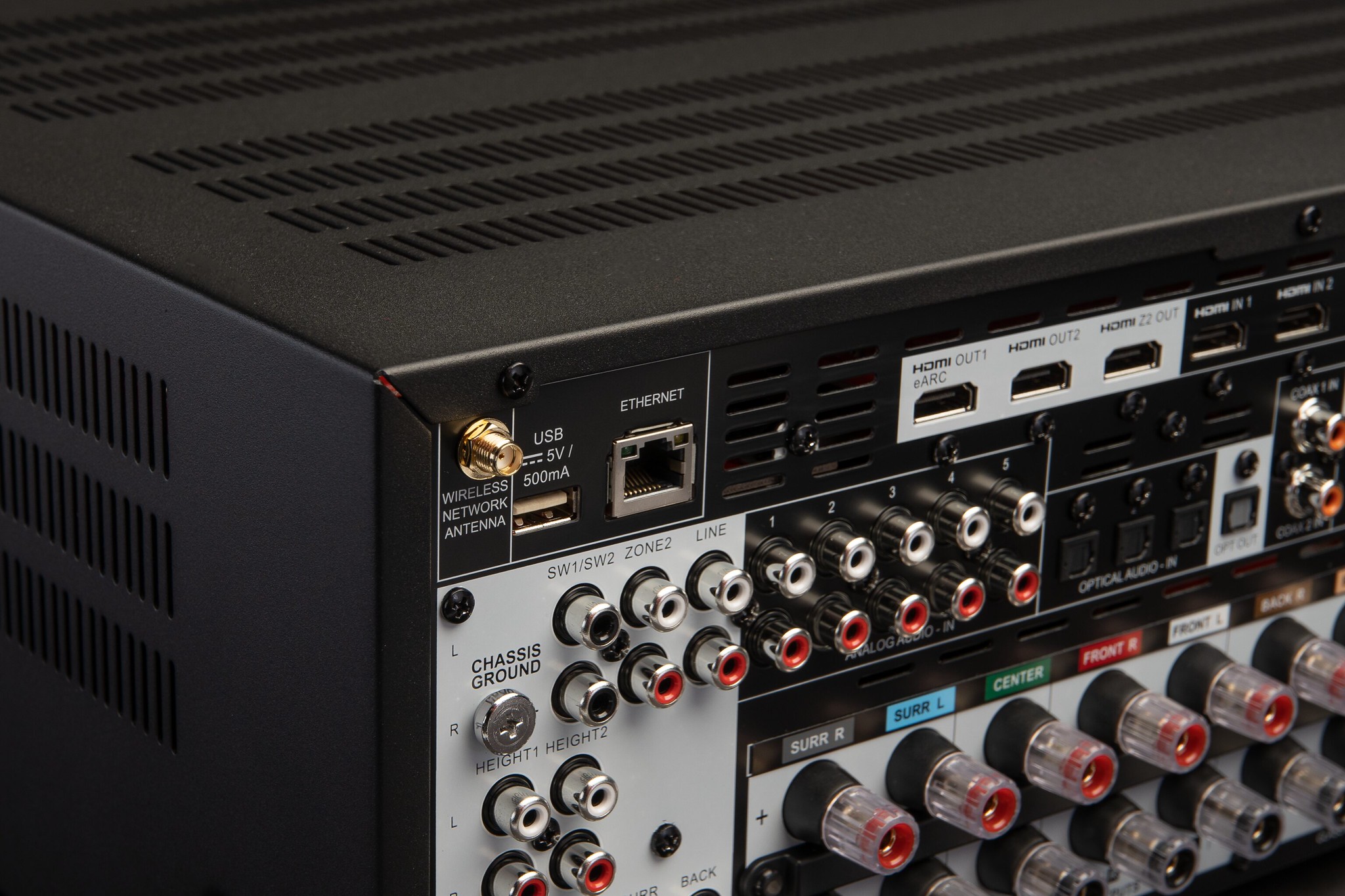 | Indgange | 7 x HDMI, 5 x Stereo RCA, 3x Optisk Digital, 2 X Coax Digital, Netværk Ethernet |