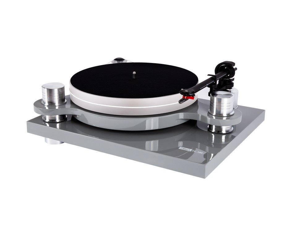 PS-100 + er konstrueret med en 2-lags sandwichstruktur. En af de absolut vigtigste egenskaber i en pladespiller er dens evne til at dæmpe resonans. Dobbeltplinten består af meget kraftig og højglanslakeret MDF. De forbindes via nogle solide og præcist udformede baser i aluminium, som hviler på justerbare spidsfødder. Pladetallerknen er skåret ud af et solidt stykke akrylglas. Disse materialer sikrer i konstellation med hinanden, en yderst robust og resonansdød pladespiller.
