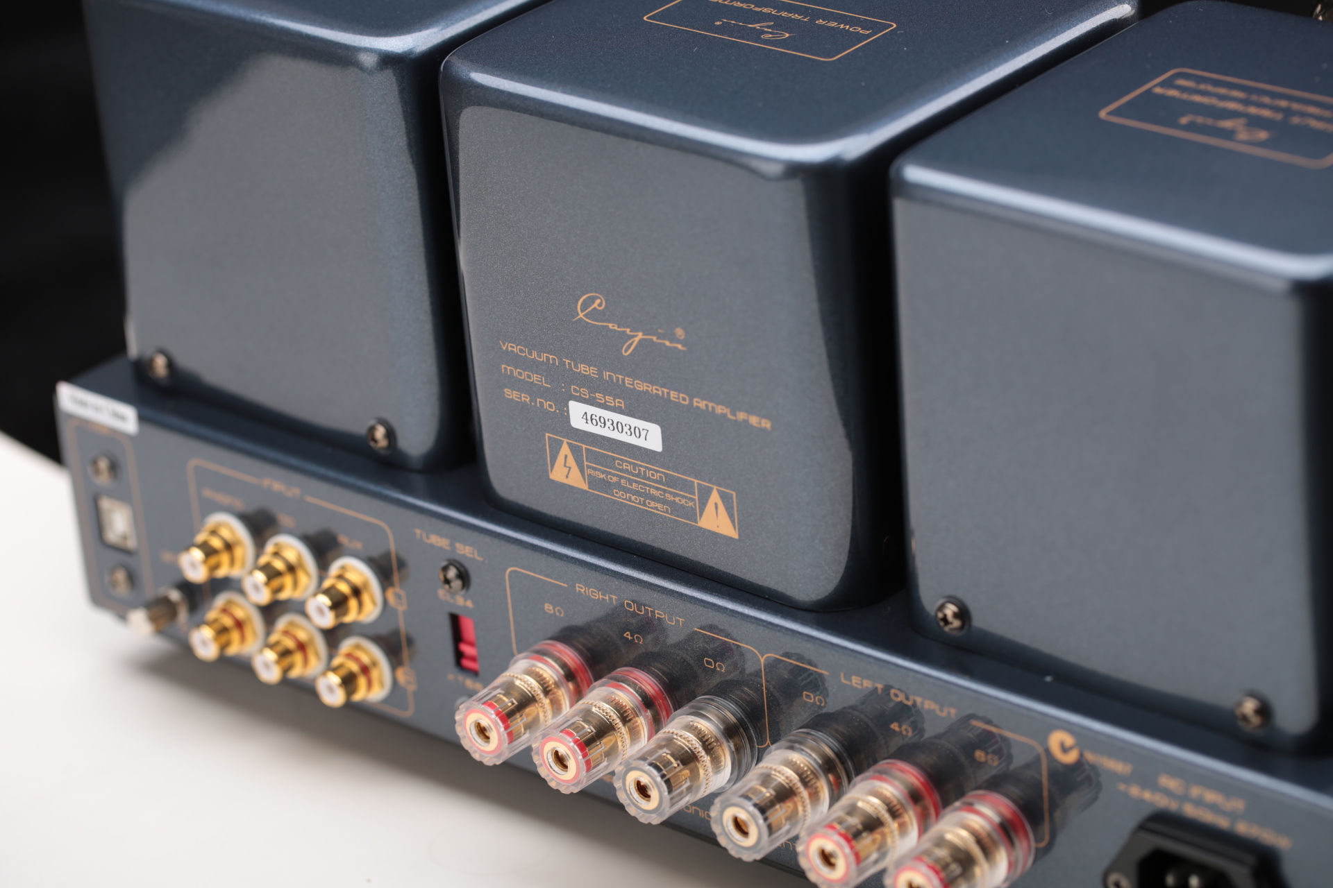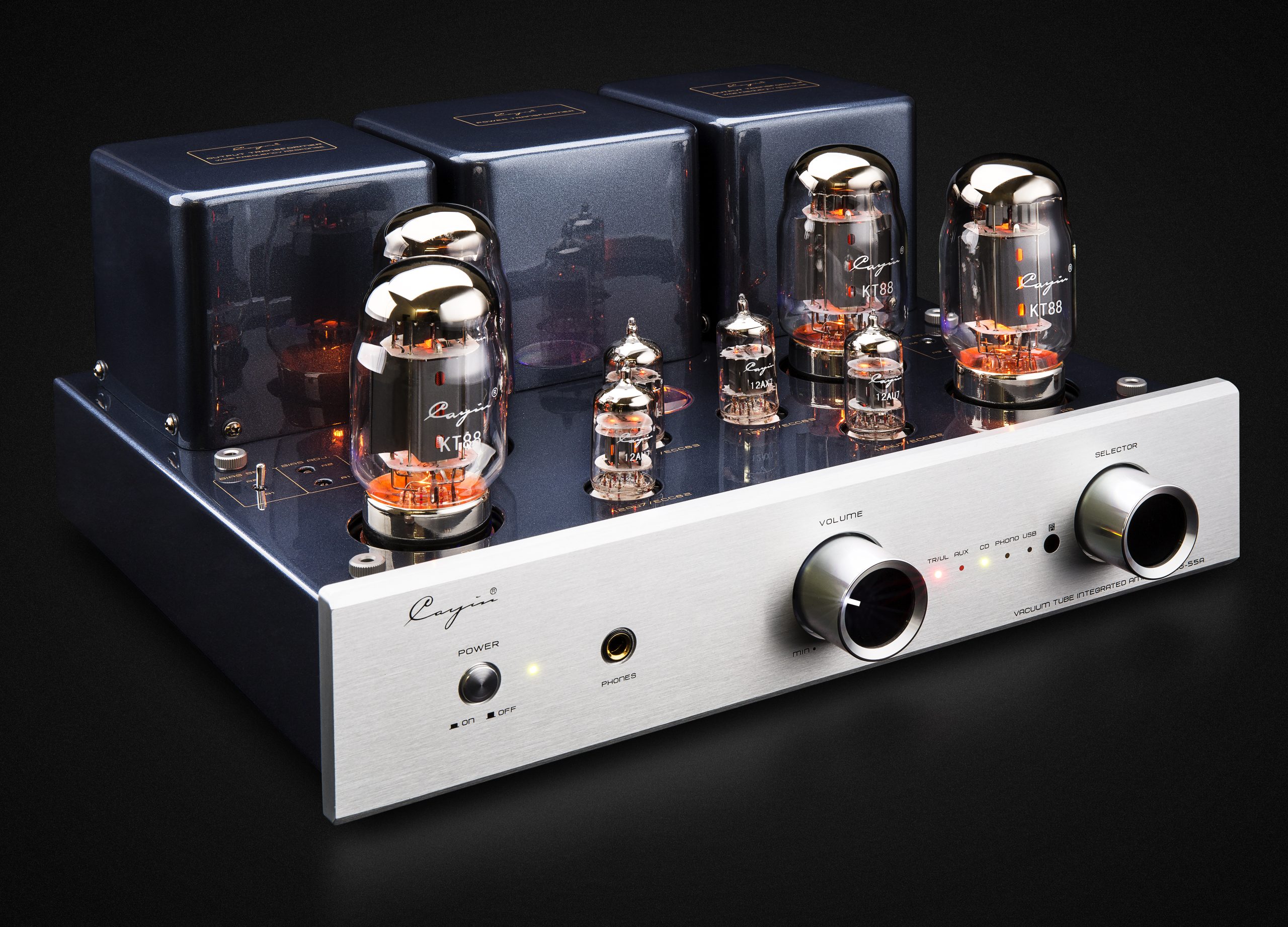 Denne topmoderne rørforstærker kan prale af 40 watt pr. kanal, ved hjælp af 4 KT88 rør, i klasse A/B ultra lineær funktion. CS-55A har også fire input muligheder, heri bl.a. Phono indgang (MM), USB, og to linjeindgange (RCA)