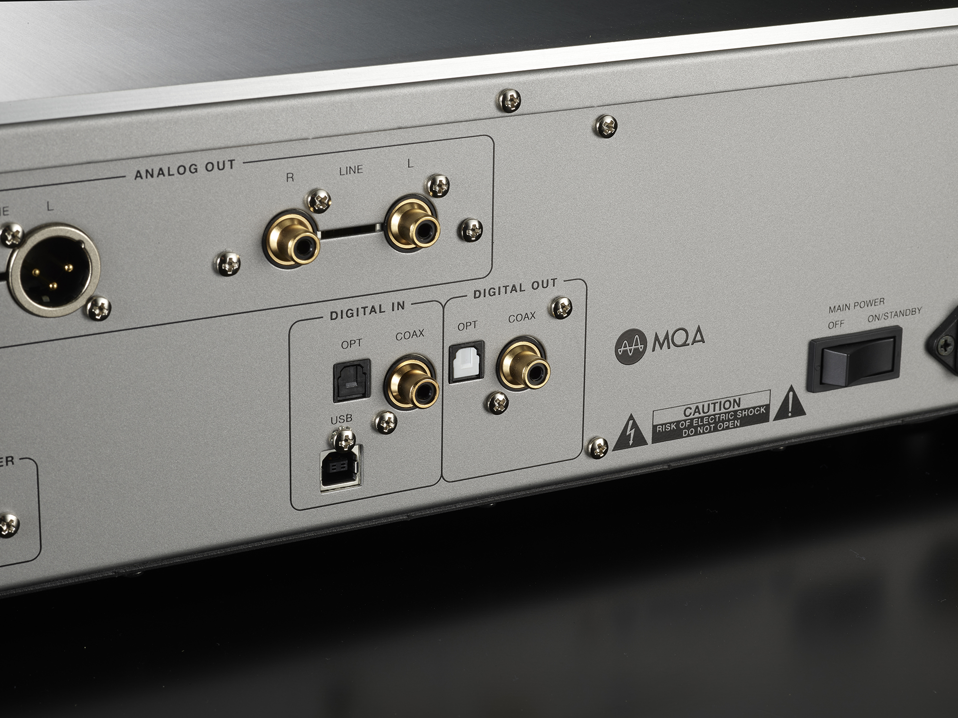 De analoge udgange omfatter både guldplaterede RCA-terminaler med 32 mm afstand og nyintroducerede Neutrik-skærmede XLR-terminaler. De digitale tilslutningsmuligheder inkluderer USB, der understøtter PCM/DSD-indgang, samt koaksiale og optiske indgange til PCM-format op til 192kHz/24-bit. Derudover er der koaksiale og optiske udgange.