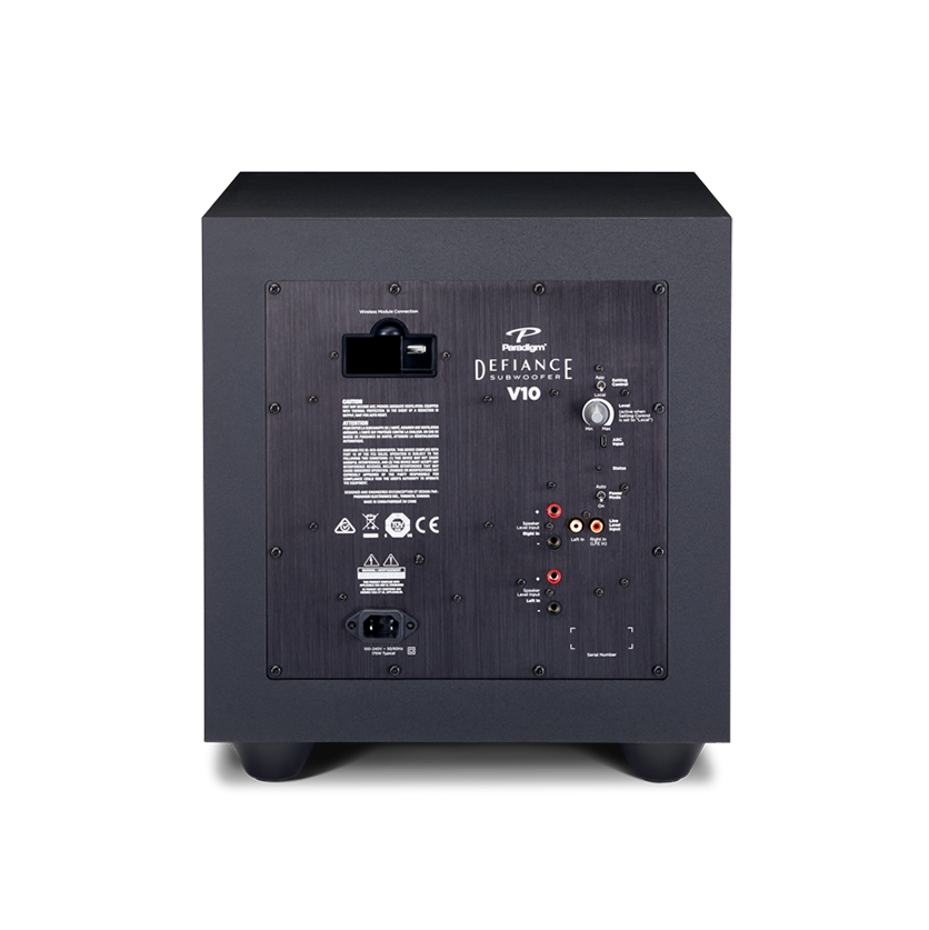 Du har også mulighed for at forbinde V10 og V12 trådløst til dit anlæg – via Paradigms WT-Kit (tilkøb) kan du forbinde subben helt uden signalkabel og derved opnå komplet frihed, når du skal finde den bedste placering i rummet.