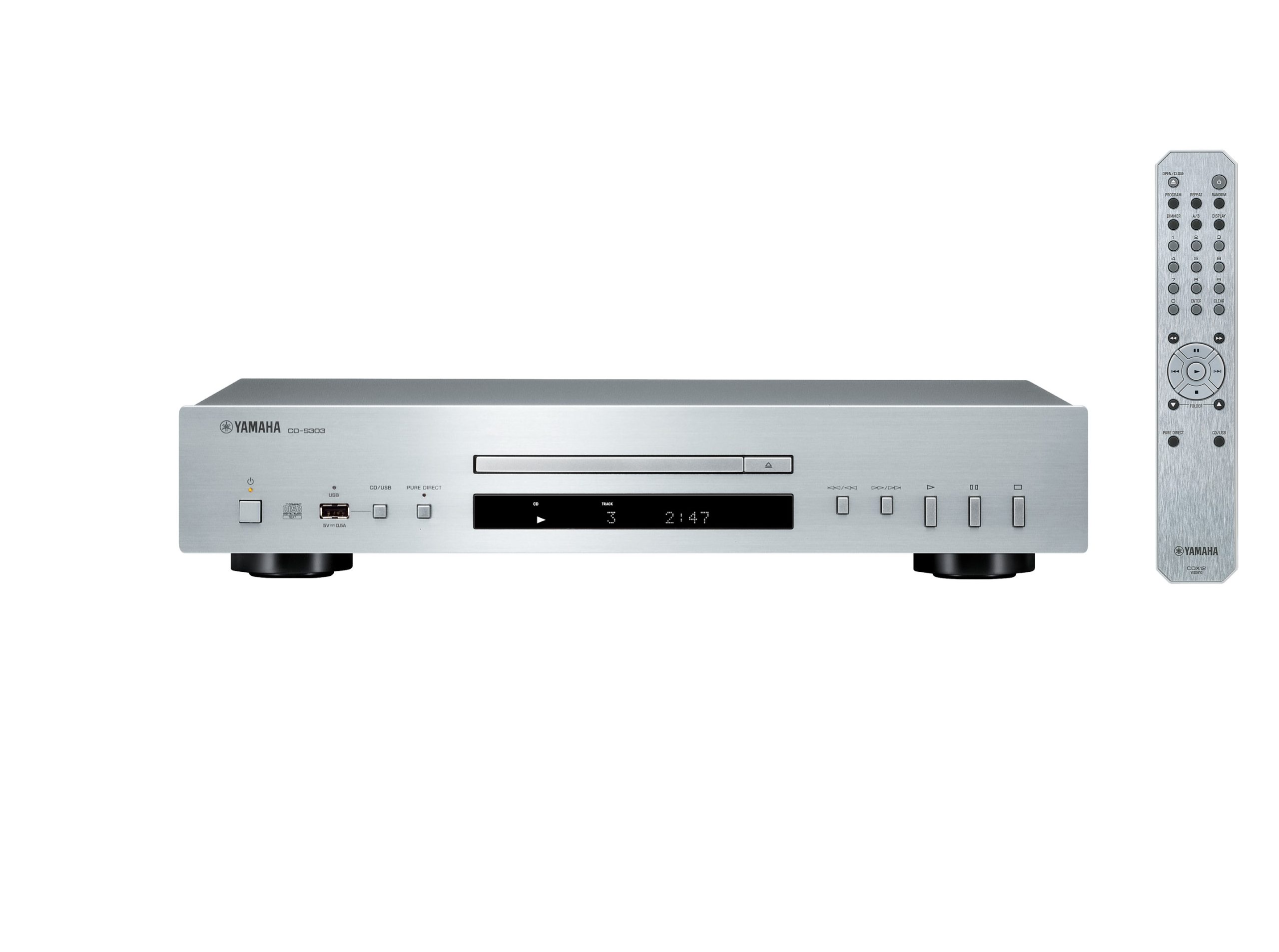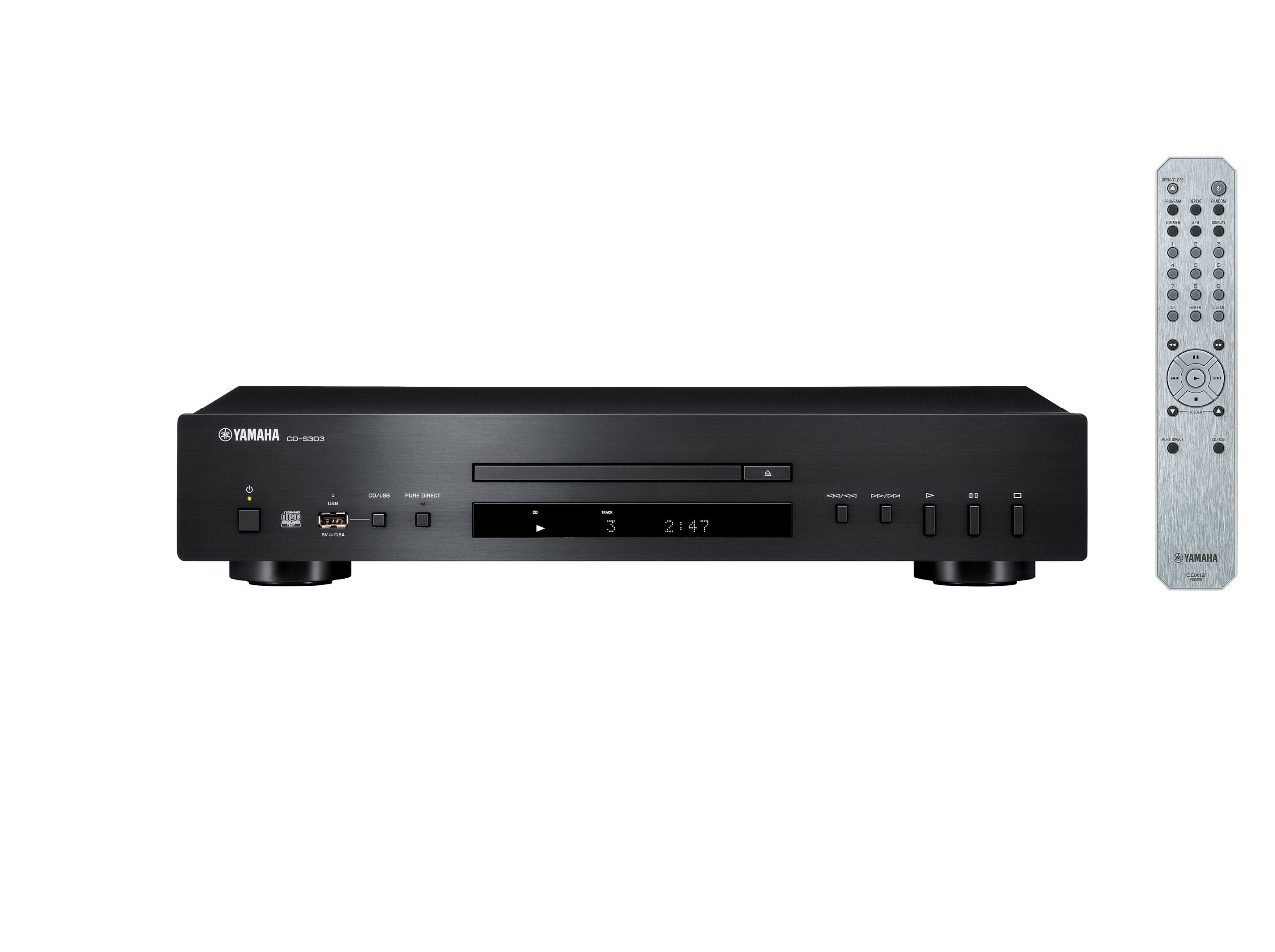 Yamaha CD-S303 er en anerkendt CD-afspiller, som leverer en hi-fi-oplevelse, der vil glæde selv de mere kræsne lydentusiaster. Udover at afspille dine yndlings-CD’er med en flot lydkvalitet, klarer den også nemt afspilning af musikfiler i høj opløsning gemt på USB-enheder gennem den praktiske USB-port på frontpanelet.